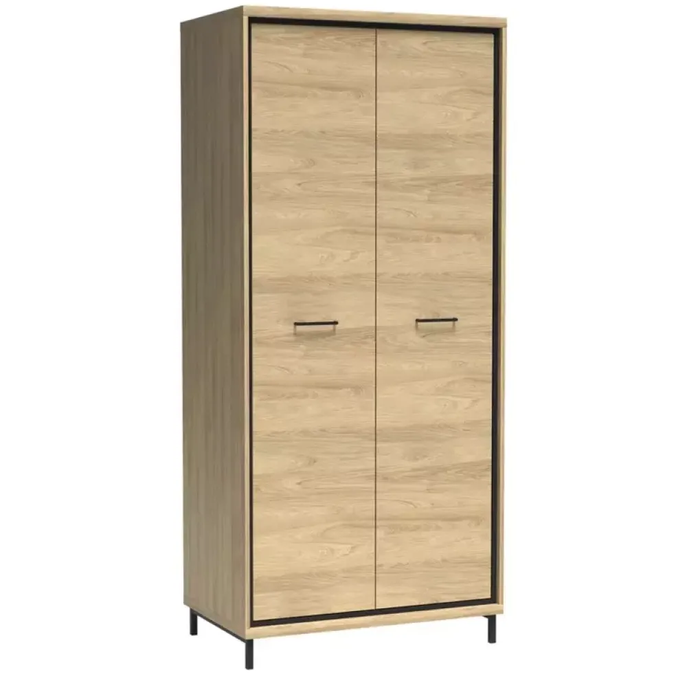 - Szafa MORNE została wyposażona w drążek na wieszaki, nad którym znajduje się półka. Dodatkowo szafa z jest dostępna w wariancie z wysokimi nóżkami, które nadają bryle loftowych akcentów.