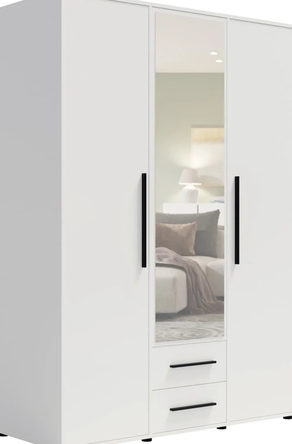 - Szafa trzydrzwiowa MAXIDO z lustrem oferuje funkcjonalne wnętrze z 2 drążkami, 6 półkami i 2 szufladami. Drzwi uchylne, z systemem „push to open” oraz lustro na froncie. Wykonana z płyty wiórowej 16 mm, z nowoczesnymi uchwytami. Idealna do sypialni.