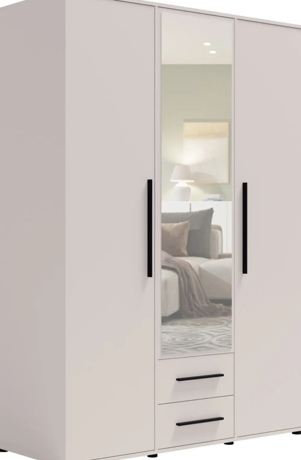 Szafa MAXIDO w kolorze kaszmir to harmonijne połączenie nowoczesnego minimalizmu i funkcjonalności. Jasne, subtelne wykończenie rozjaśnia wnętrze, a wbudowane lustro i system „push to open” zapewniają nowoczesny komfort. To mebel, który sprawdzi się zarówno w sypialni, jak i garderobie.