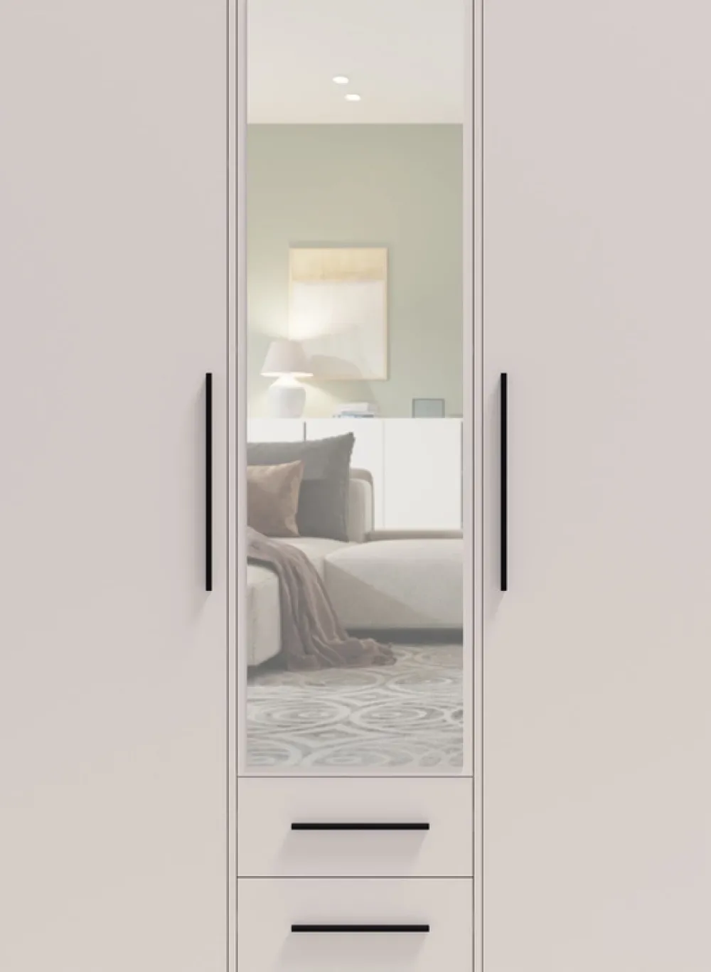 - Szafa trzydrzwiowa MAXIDO z lustrem oferuje funkcjonalne wnętrze z 2 drążkami, 6 półkami i 2 szufladami. Drzwi uchylne, z systemem „push to open” oraz lustro na froncie. Wykonana z płyty wiórowej 16 mm, z nowoczesnymi uchwytami. Idealna do sypialni.