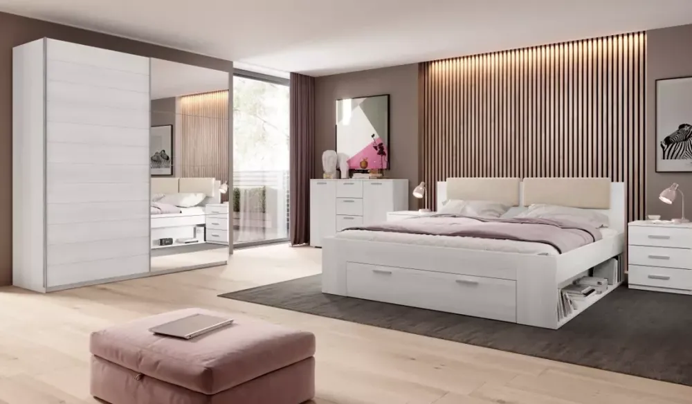 - Przestronna szafa przesuwna z lustrem o szerokości 270 cm