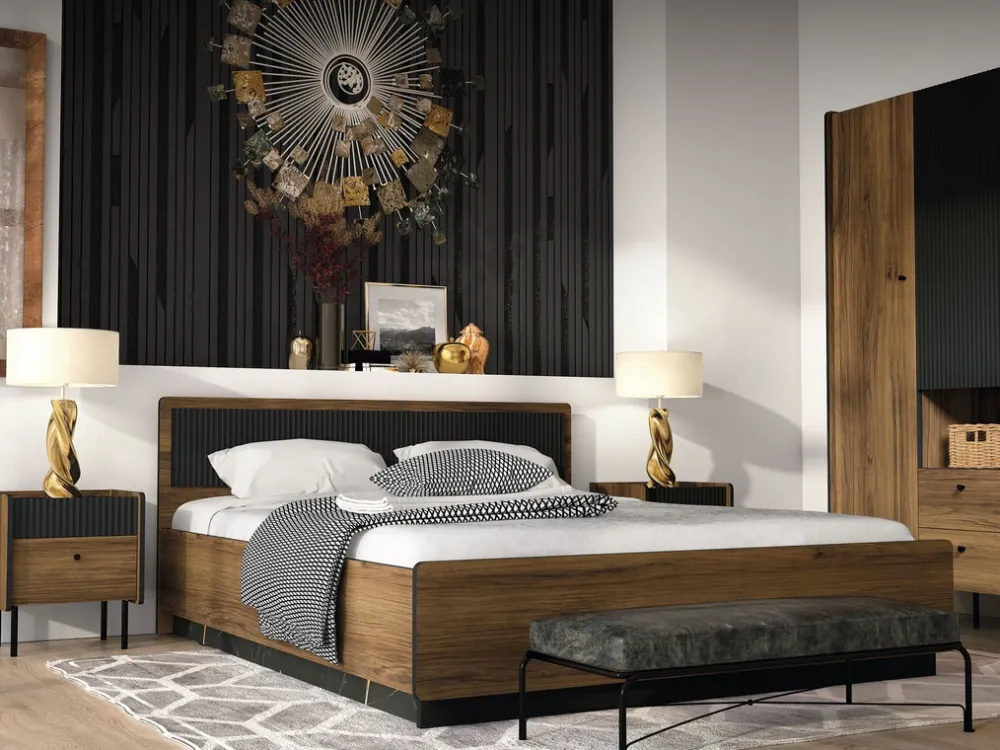 Nasz zestaw mebli sypialnianych łączy w sobie nie tylko piękno i styl, ale także praktyczność. Ryflowane fronty nie tylko dodają uroku, ale także są przyjemne w dotyku, co podnosi komfort użytkowania. Uchwyty zapewniają łatwość w otwieraniu i zamykaniu szuflad i drzwi, jednocześnie stanowiąc elegancki detal dekoracyjny.