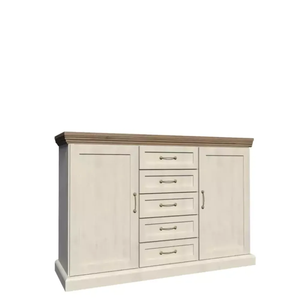 - Komoda ROZANO została wykonana w stylistyce, która uczyni twoje pomieszczenie ciepłym i przytulnym. Została wyposażona w parę drzwi, za którymi znajdują się półki oraz cztery szuflady w swojej centralnej części. Dodatkowo komoda posiada metalowe uchwyty.