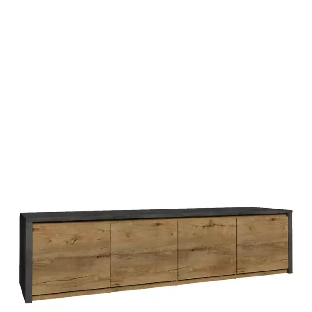 Komoda MERIZO posiada 170 cm szerokości, dzięki którym doskonale sprawdzi się jako miejsce pod całkiem duży telewizor. Natomiast nowoczesna stylistyka sprawia że doskonale odnajduje się we współczesnych aranżacjach salonów. Posiada cztery drzwi, za którymi znajdziesz miejsce na swoje akcesoria.