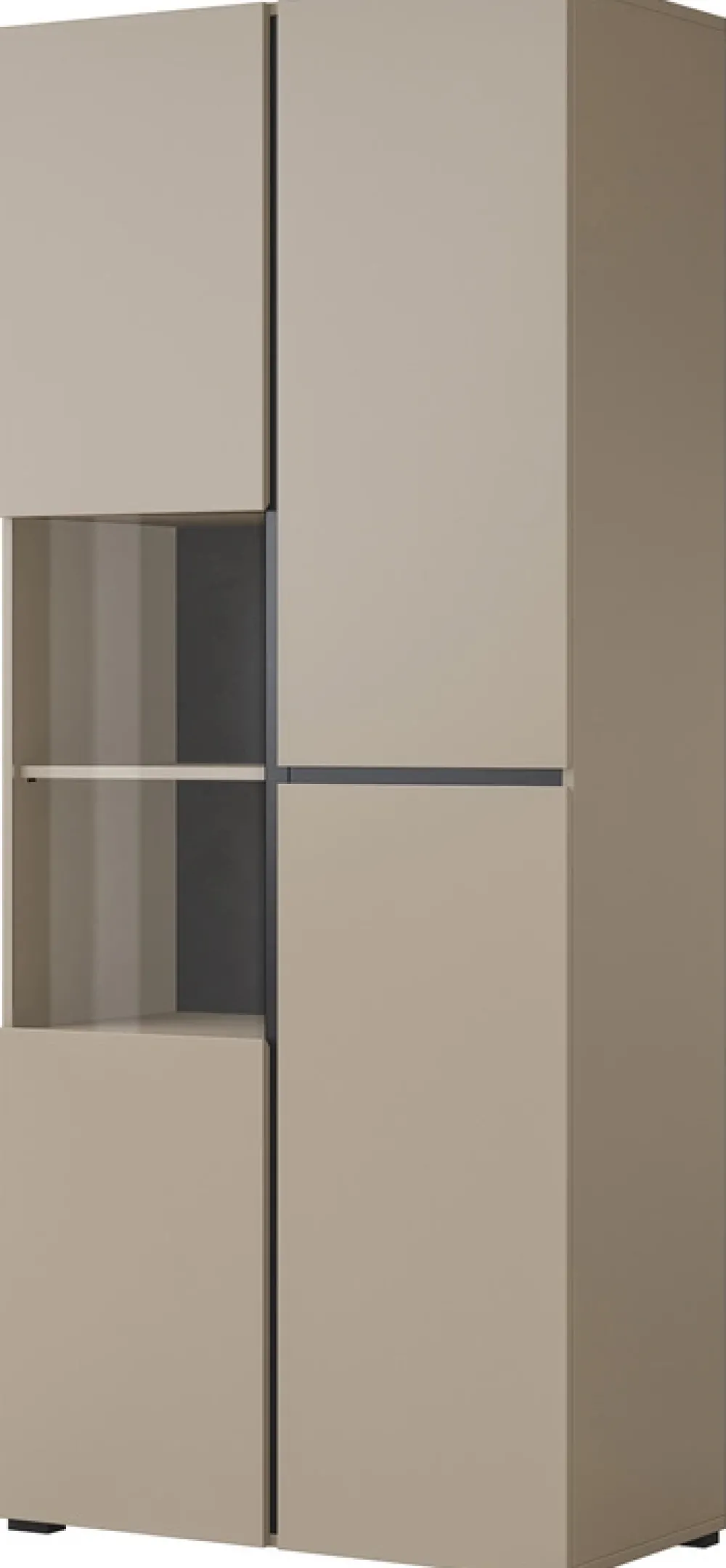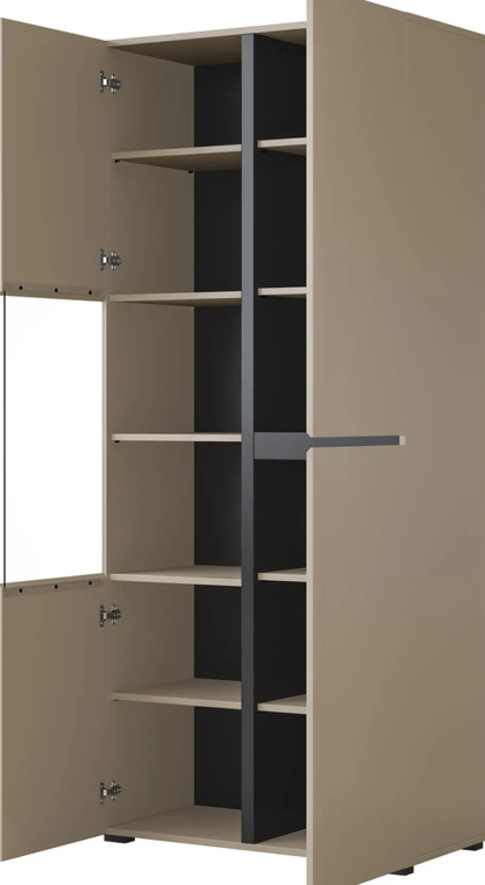 - Witryna 80 cm z sześcioma półkami po prawej i przeszklonymi drzwiami po lewej to połączenie funkcjonalności i stylu. Wykonana z płyty laminowanej 15 mm, z obrzeżami ABS, świetnie sprawdzi się w nowoczesnym wnętrzu.