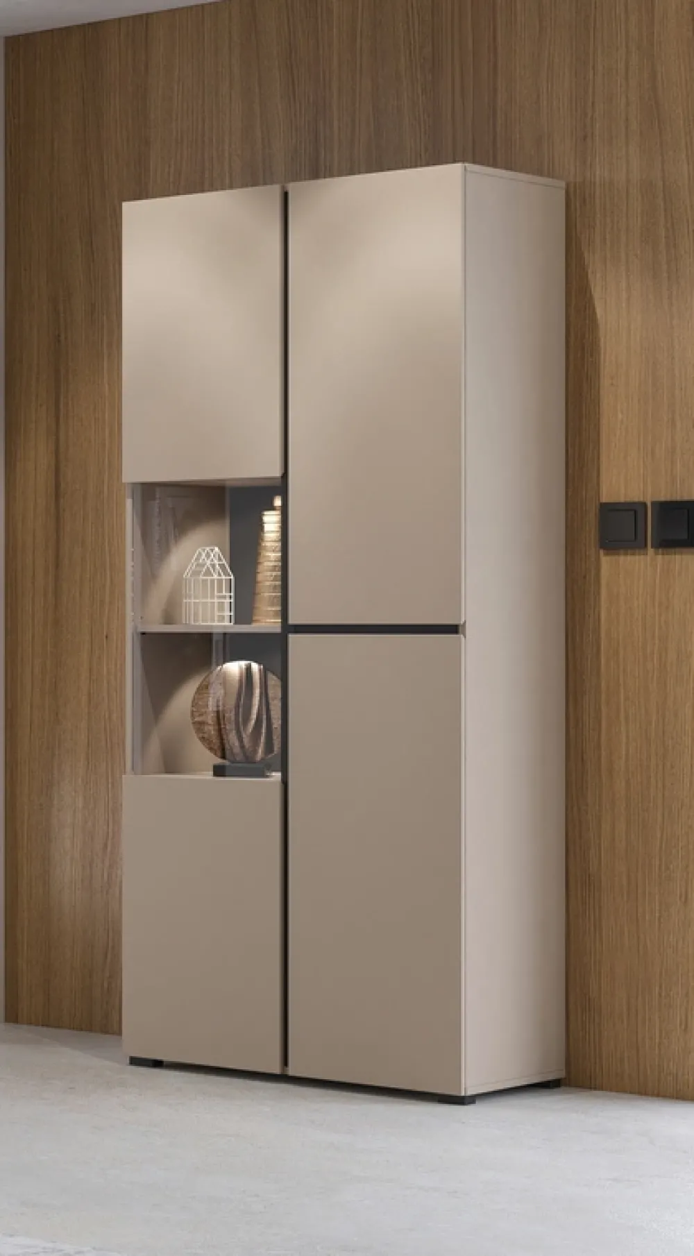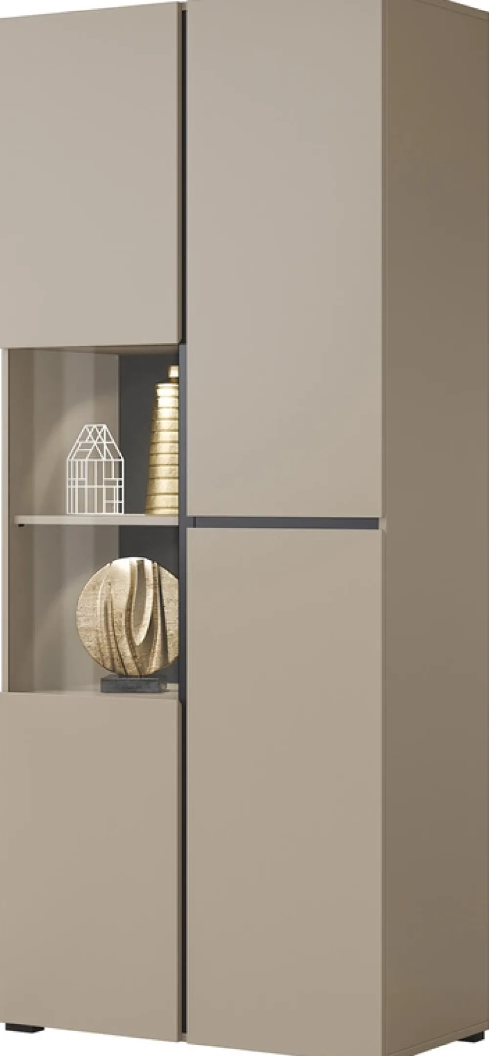 Witryna łączy w sobie estetykę i praktyczne rozwiązania, które pomogą Ci utrzymać porządek i stworzyć przytulną atmosferę w salonie, jadalni czy gabinecie. Przeszklenie nadaje lekkości, a zamknięte półki ukryją wszystko, co chcesz zachować tylko dla siebie.