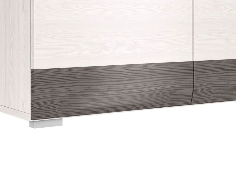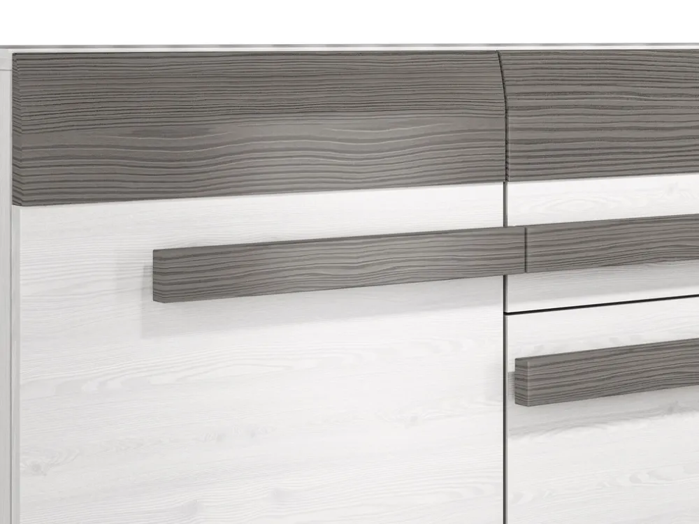 Uchwyty wykonane z wytrzymałej płyty MDF to elegancki detal, który dopełnia nowoczesny wygląd komody. Ich subtelny design w połączeniu z kolorem sosny śnieżnej podkreśla minimalistyczny charakter mebla, dodając mu wyjątkowego uroku.