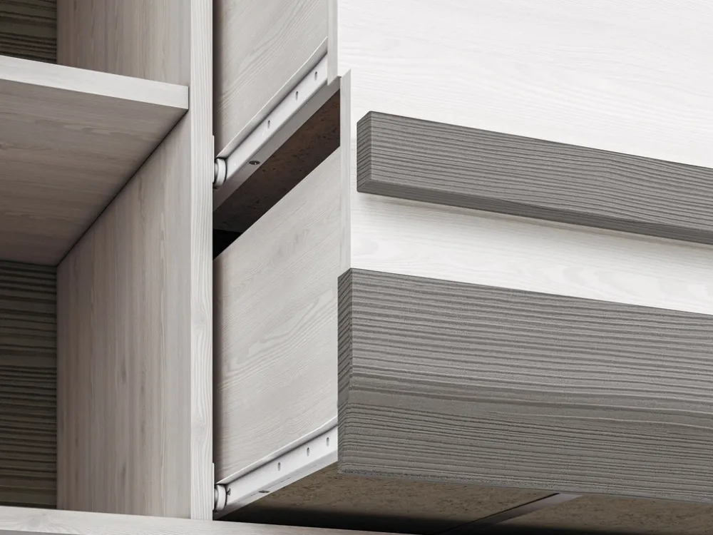 - Szuflady zostały osadzone na prowadnicach rolkowych.