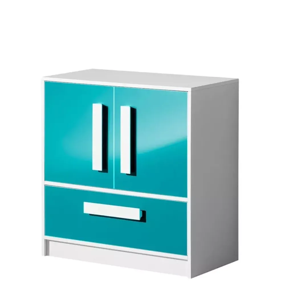 Niska komoda z kolekcji mebli systemowych GULIVER została wyposażona w szufladę oraz parę drzwi, za którymi znajduje się półka. Komoda dzięki swojej budowie, zmieści się w każdym pomieszczeniu. Wiele opcji kolorystycznych sprawia, że komoda GULIVER pasuje zarówno do pokoju młodzieżowego, jak i pokoju dziecka.
