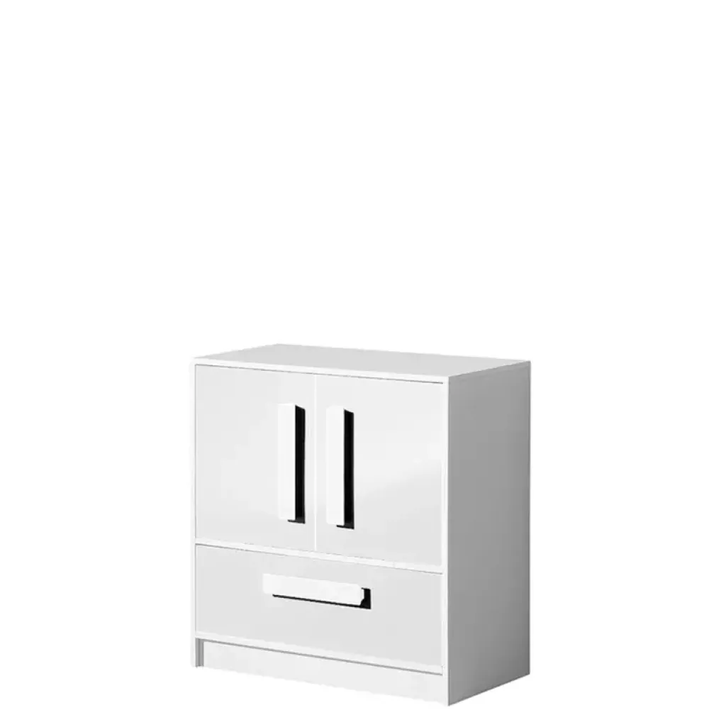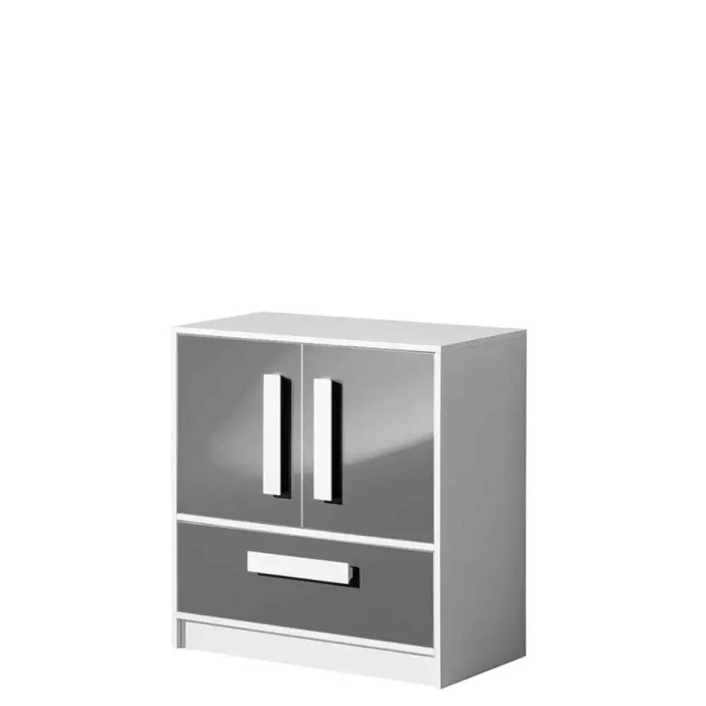 - Niska nowoczesna komoda z kolekcji mebli systemowych GULIVER. Komoda została wyposażona w szufladę oraz parę drzwi, za którymi znajduje się półka. Komoda dzięki swojej budowie, zmieści się w każdym pomieszczeniu.
