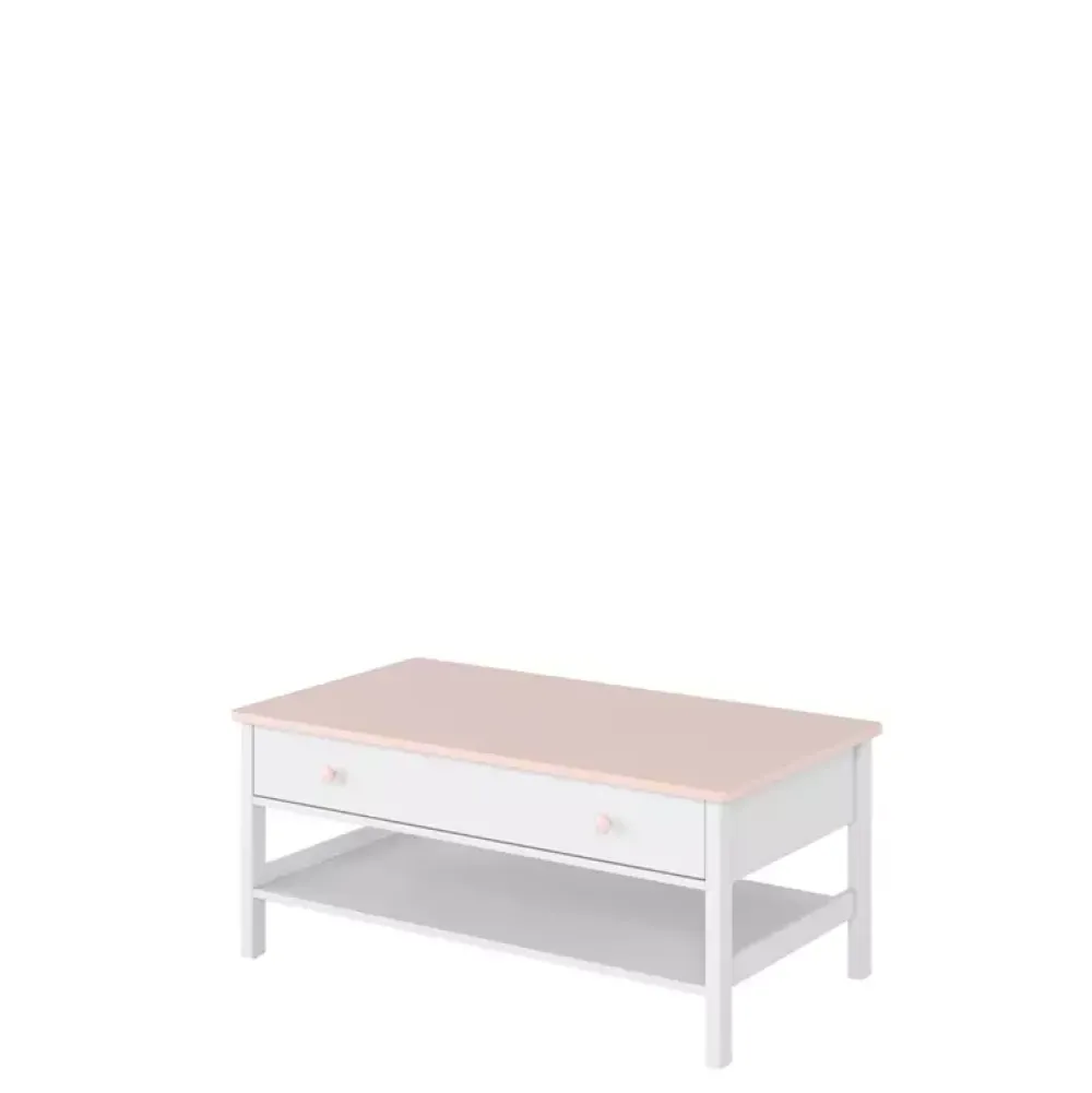 Stolik kawowy LUNA w kolorze bieli alpejskiej to elegancki i praktyczny mebel, który doskonale sprawdzi się w pokoju dziecięcym. Stolik wyposażony jest w półkę oraz szufladę pod blatem, co pozwala na przechowywanie różnych drobiazgów w jednym miejscu.