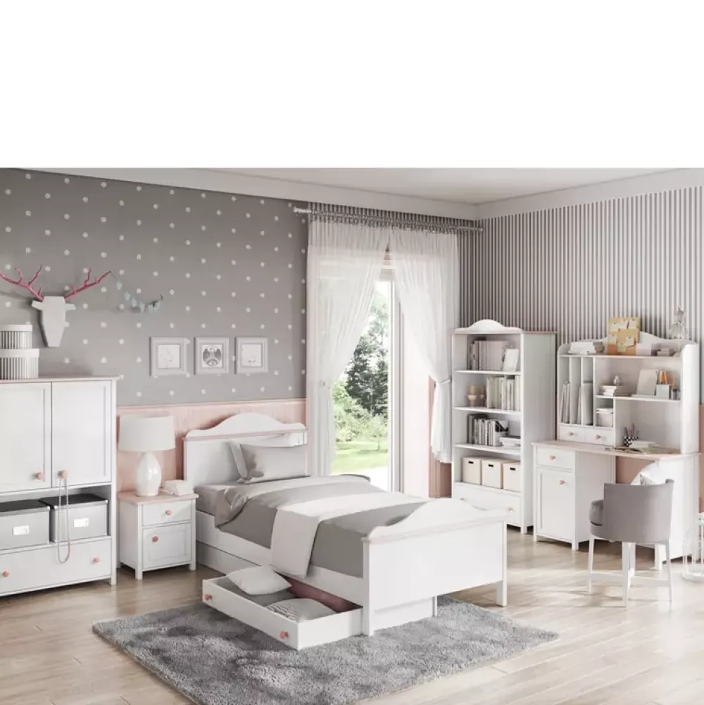 - Stolik do pokoju dziecięcego LUNA został wyposażony w pojemną szufladę na drobiazgi znajdującą się pod blatem oraz w półkę poniżej. Blat stolika ma wymiary 110×60 cm, a same obrzeża zabezpieczono przed uszkodzeniami mechanicznymi okleiną ABS.
