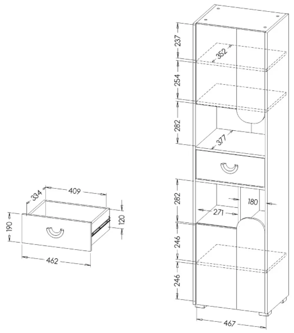 - Regał z szufladą