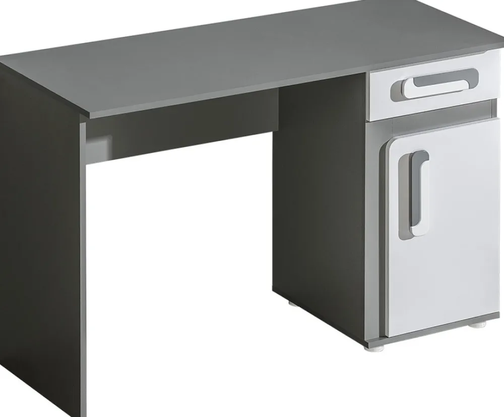 Meblościanka młodzieżowa z kolekcji mebli systemowych APETITO składa się z szafy z szufladą i dużą przestrzenią z drążkiem na wieszaki, biurka z szufladą i drzwiami, za którymi znajduje się półka oraz regału z trzema szufladami i dwiema półkami, uzupełnieniem meblościanki są dwie półki wiszące, na których możesz umieścić swoje książki, dekory czy rozmaite akcesoria.
