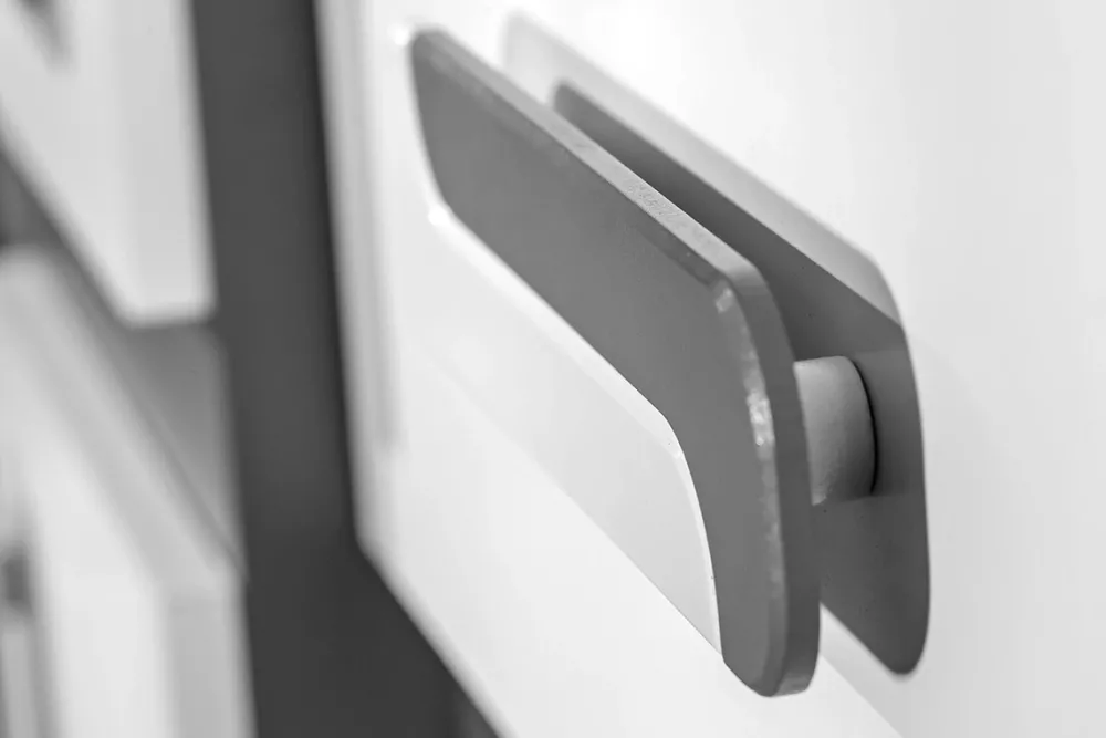 - Uchwyty dostępne w wariantach, Biały-Róż, Biały-Turkus, Biały-Antracyt. Wyboru dokonasz w konfiguratorze „Dopasuj i Kup”. Wybierając kolor uchwytu, automatycznie zmienia się również kolor dekoru widocznego u frontu.