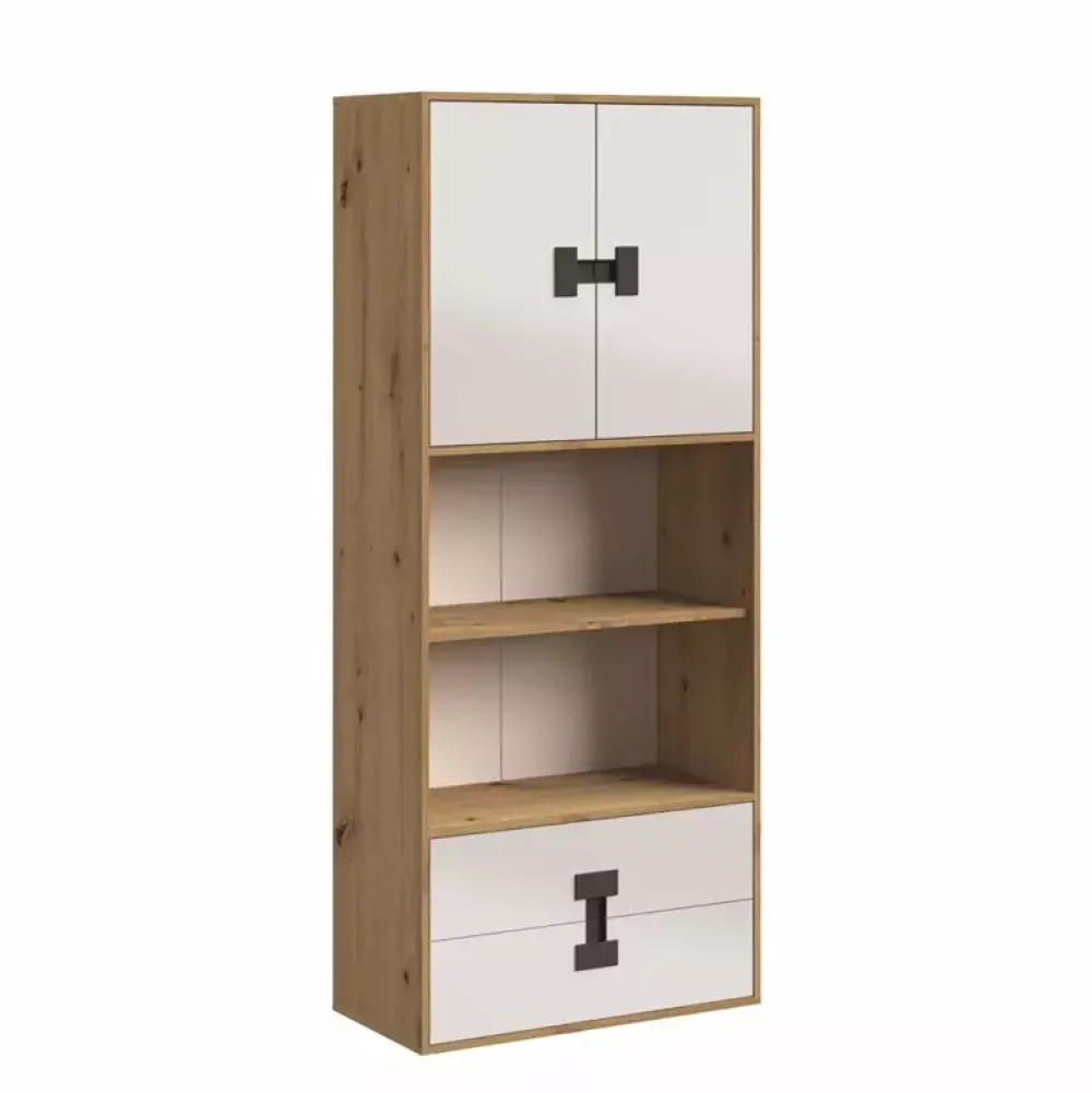 - Zestaw mebli do pokoju młodzieżowego w kolorze Dąb Artisan z kolekcji INDEX. Zestaw mebli zawiera wysokie łóżko z miejscem na akcesoria sypialniane, komodę narożną razem z nadstawką, regał 80 cm, biurko z nadstawką oraz dwie półki 90 cm.