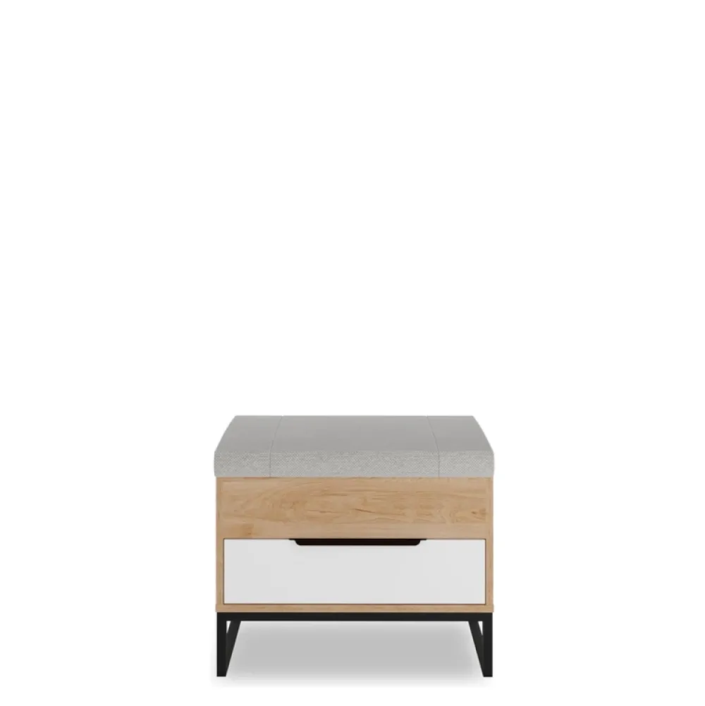 Książki, budzik i drobiazgi ukryjesz w szafce nocnej z wnęką. Natomiast kufer z siedziskiem to miejsce do przechowywania oraz dodatkowe siedzenie w jednym.
