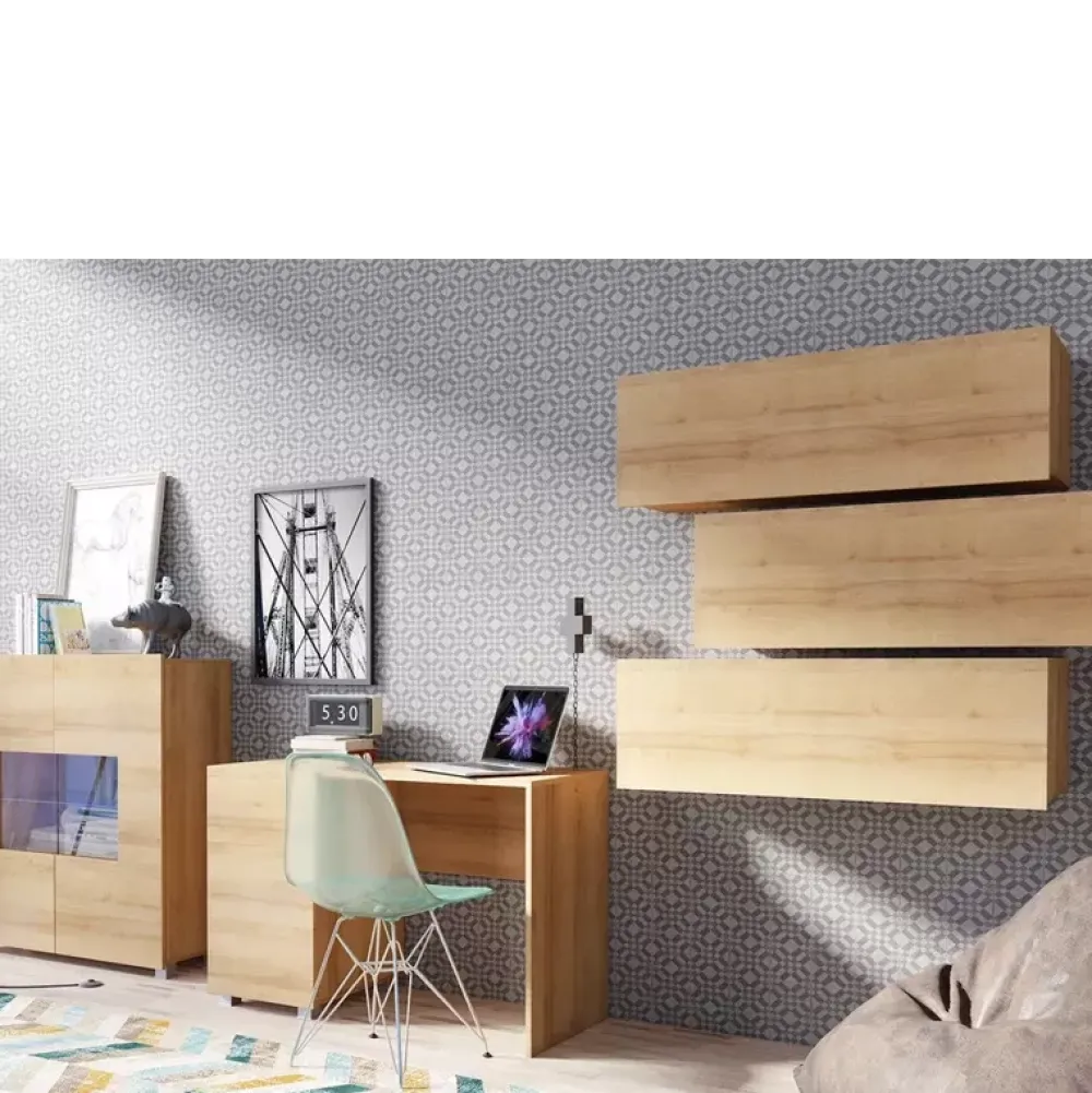 Zestaw mebli młodzieżowych MODERN to idealne rozwiązanie do pokoju ucznia lub nastolatka. W skład zestawu wchodzą: biurko z trzema szufladami, trzy szafki wiszące z możliwością wyboru kierunku otwierania frontu oraz praktyczna komoda.