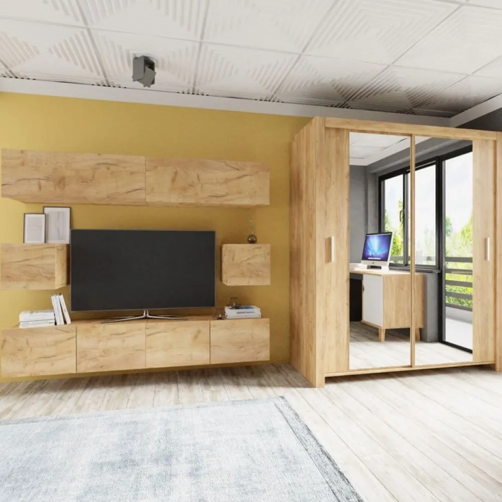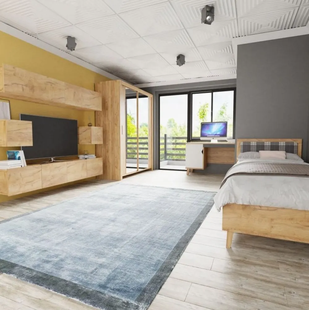 Specjalnie dla Państwa połączyliśmy w jedną całość kilka Naszych kolekcji, tak aby stworzyć zestaw mebli do małego mieszkania. Zestaw mebli młodzieżowych w skład których wchodzą: duża szafa na ubrania, biurko skandynawskie oraz szafki wiszące, które w konfiguracji jak na wizualizacji tworzą nowoczesną meblościankę.