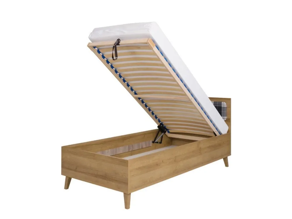 - Łóżko z kolekcji MERKURY, łóżko z tapicerowanym zagłówkiem, ze stelażem i pojemnikiem na pościel, bez materaca;
