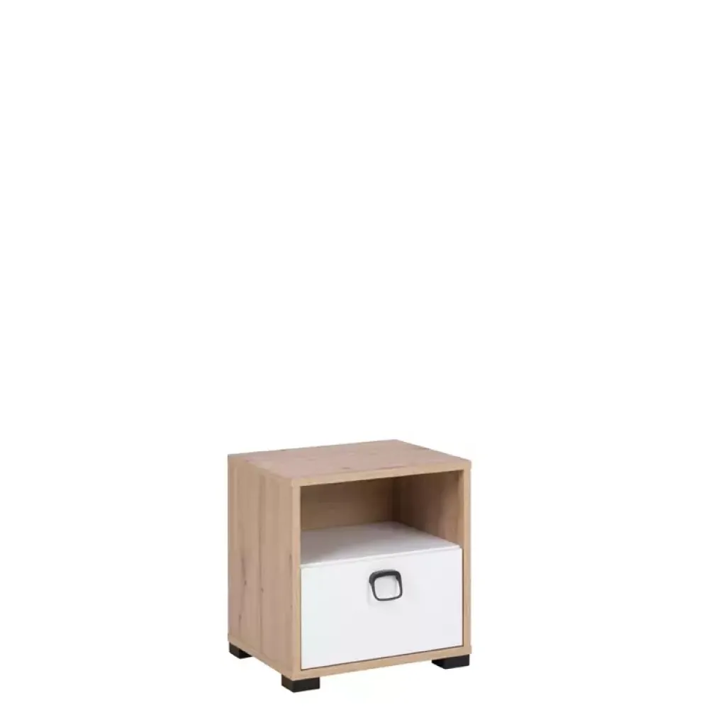 Mała szafka nocna CAMERUN łączy w sobie funkcjonalność i nowoczesny design, idealna do pokoju młodzieżowego. Ta szafka nocna z szufladą to doskonałe rozwiązanie, by utrzymać porządek w przestrzeni młodego użytkownika. Szuflada szafki nocnej osadzona jest na prowadnicach kulkowych, co gwarantuje płynne wysuwanie i dużą nośność, a jednocześnie pozwala na łatwe przechowywanie drobiazgów, takich jak książki czy akcesoria elektroniczne. Obrzeża szafki nocnej są zabezpieczone wytrzymałą okleiną ABS, co sprawia, że mebel jest odporny na uszkodzenia, a jego żywotność zostanie zachowana przez długie lata użytkowania. Nowoczesna stylistyka tej szafki nocnej do pokoju młodzieżowego sprawi, że będzie się idealnie komponować z różnymi aranżacjami wnętrz, dodając im wyjątkowego charakteru. Niezależnie od tego, czy jest to miejsce do nauki, relaksu czy zabawy, młodzieżowa szafka nocna stanowi doskonałe uzupełnienie każdego pokoju.
