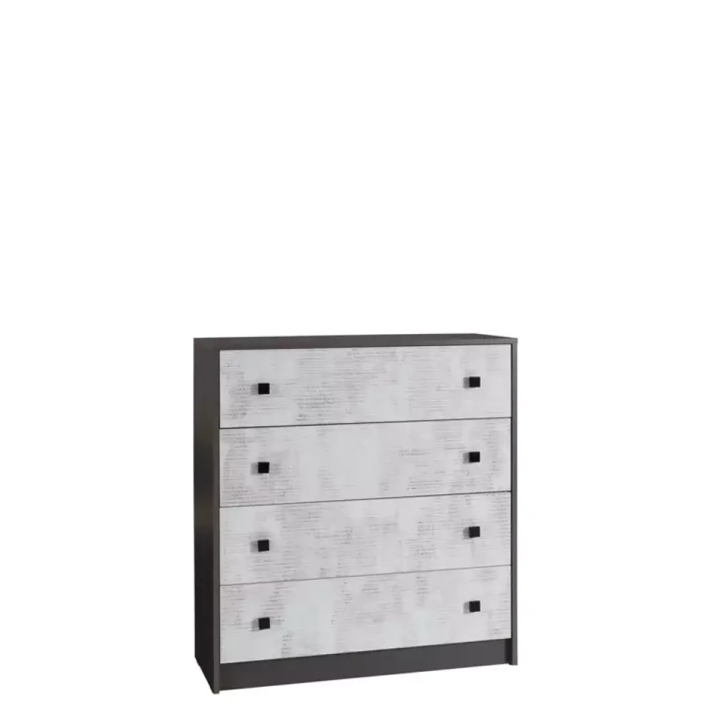 Meble młodzieżowe TOM to świetny przykład nowoczesnego wykończenia, które wpasuje się nawet w najbardziej wymagające gusta. Proste a zarazem funkcjonalne i pojemne rozwiązania do pokoju nastolatków to podstawa zadowolenia rodziców. Na system mebli młodzieżowych TOM składają się elementy takie jak: szafa z uchylnymi drzwiami, szafa narożna, regały z drzwiami uchylnymi, pojemne komody z szufladami i drzwiczkami, łóżko z pojemnikiem i półkami, pojemne biurko z szufladami oraz dwupoziomowa półka wisząca. Takie rozwiązania jak pojemnik na pościel podnoszony na automatach czy rolkowe prowadnice szuflad zapewniają przyjemne i łatwe użytkowanie mebli. Meble w kolorze grafitowym z frontami w industrialnym stylu imitującym beton architektoniczny.