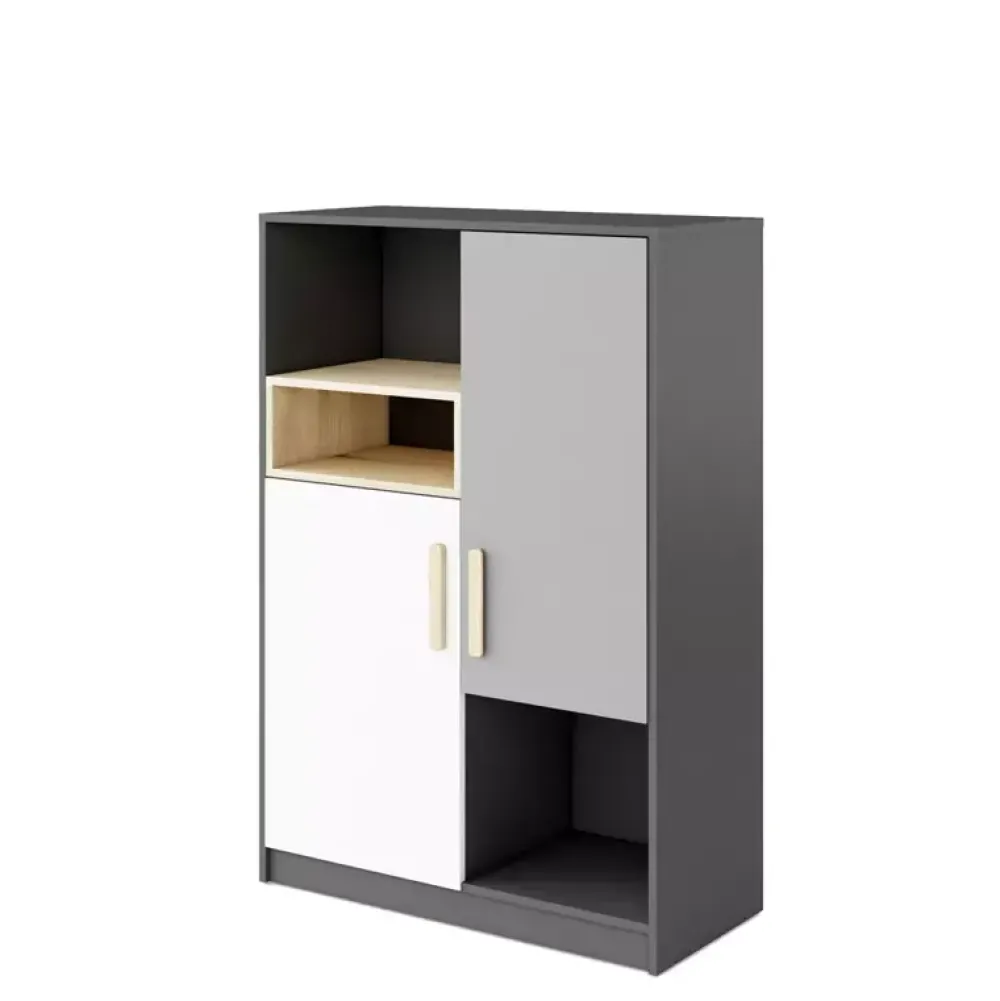 - Komoda młodzieżowa POK została wyposażona w parę drzwi, za każdymi z nich znajduje się praktyczna półka. Komoda posiada również otwarte poziomy, które znakomicie sprawdzą się do umieszczenia rozmaitych dekorów oraz akcesoriów.