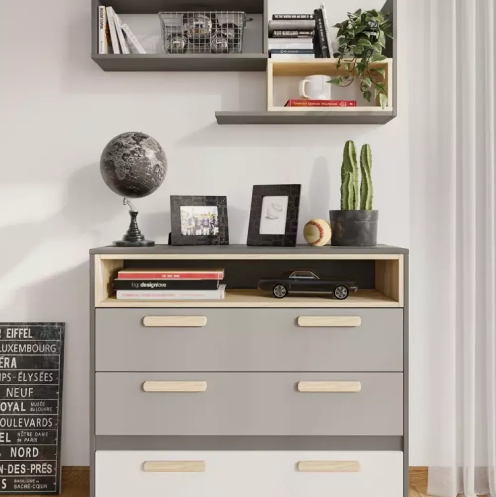 Komoda do pokoju młodzieżowego POK z pewnością będzie idealnym dodatkiem do pokoju młodzieżowego. Wyposażona jest w trzy pojemne szuflady, które poruszają się na prowadnicach kulkowych, co zapewnia płynne i ciche otwieranie i zamykanie. Szuflady te oferują dużo miejsca na przechowywanie ubrań, bielizny, a także innych przedmiotów, takich jak książki czy artykuły szkolne.