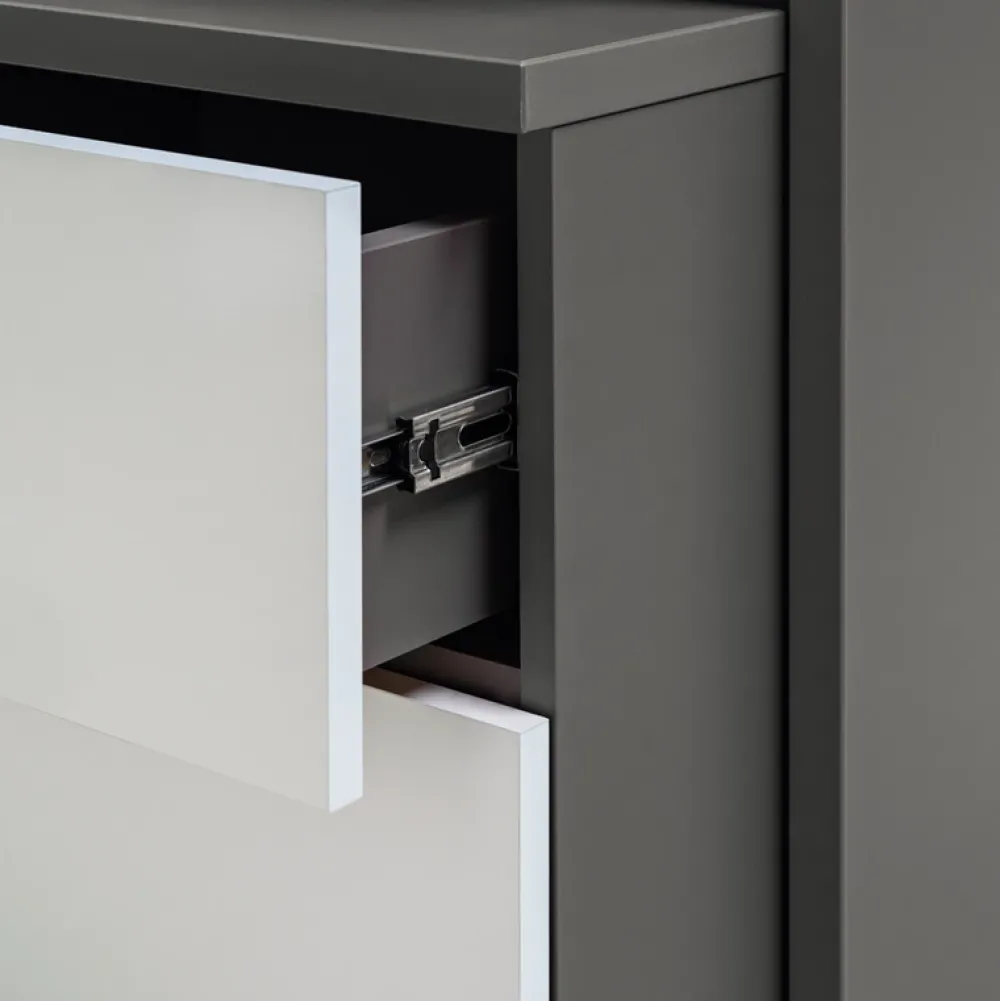 Na górze znajduje się pojemna szuflada wyposażona w mechanizm „push to open”. To funkcjonalna innowacja, która pozwala na łatwe i szybkie otwieranie za pomocą delikatnego nacisku, eliminując potrzebę tradycyjnych uchwytów lub klamek. Szuflada oferuje doskonałe miejsce na przechowywanie małych przedmiotów, takich jak zeszyty, książki czy akcesoria elektroniczne.