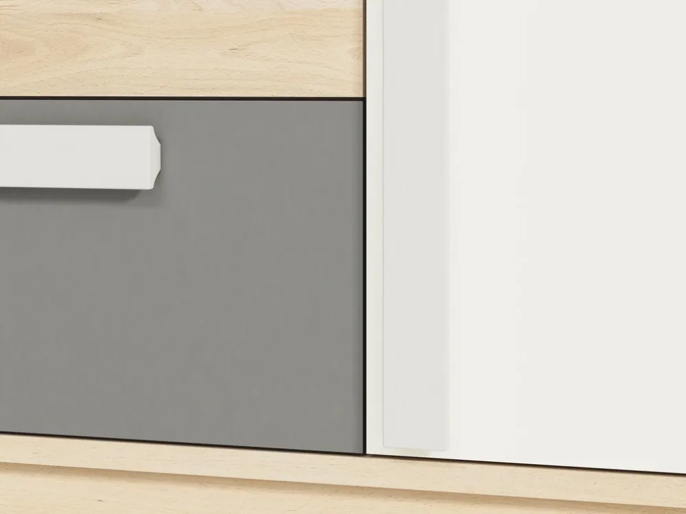 - Obrzeża zostały starannie wykończone okleiną ABS. Zastosowanie owego wykończenia obrzeży zwiększa odporność mebla na obtarcia.