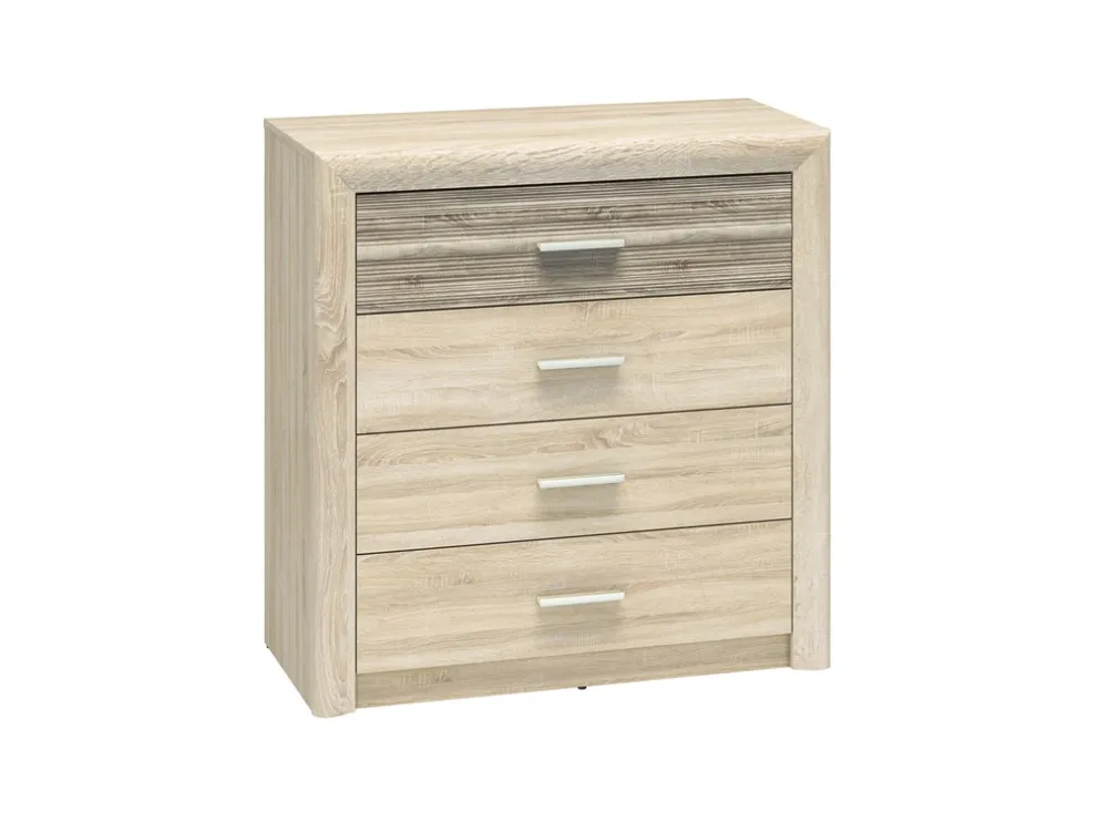 Jeśli poszukujesz mebla, który połączy elegancję z praktycznym przechowywaniem, nasza komoda o szerokości 92 cm CASTEL w kolorze dąb sonoma to idealne rozwiązanie. Dzięki przemyślanemu układowi czterech pojemnych szuflad ten mebel doskonale sprawdzi się w każdej przestrzeni, oferując wygodne miejsce na przechowywanie Twoich rzeczy.