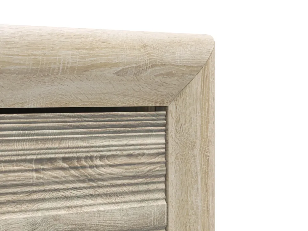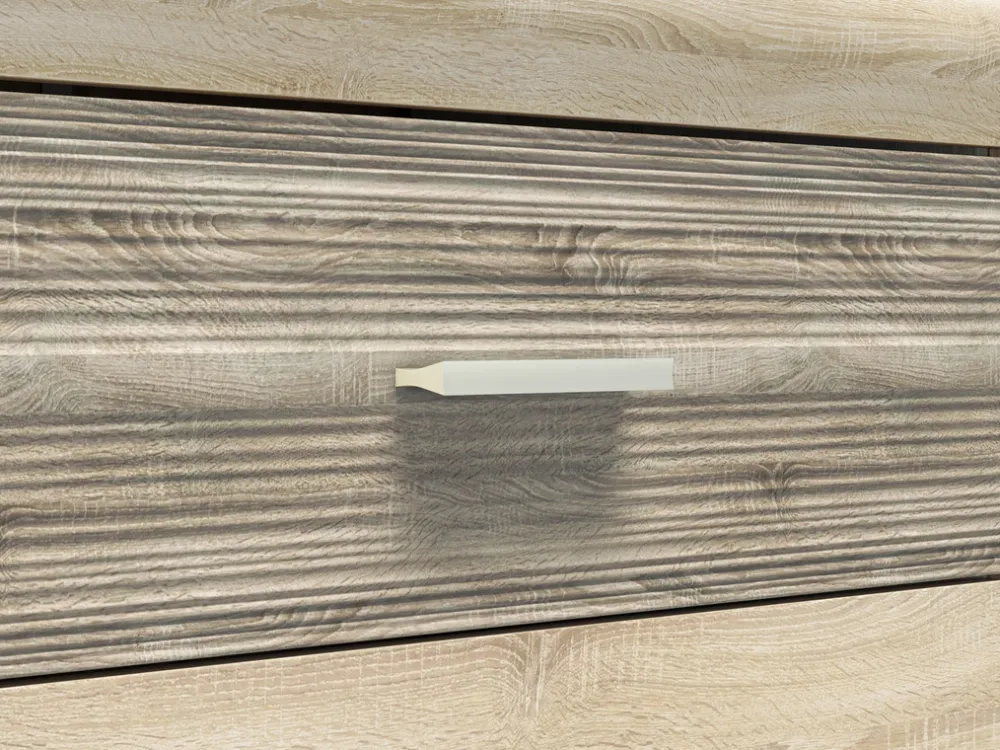 Kolor dąb sonoma to doskonały wybór, jeśli chcesz wprowadzić do swojego wnętrza ciepło i naturalny urok. Jego subtelny, neutralny odcień idealnie komponuje się z różnorodnymi aranżacjami wnętrz, dodając im przytulności i elegancji. Wykonana z wysokiej jakości materiałów, komoda nie tylko prezentuje się stylowo, ale także jest trwała i odporna na codzienne użytkowanie.