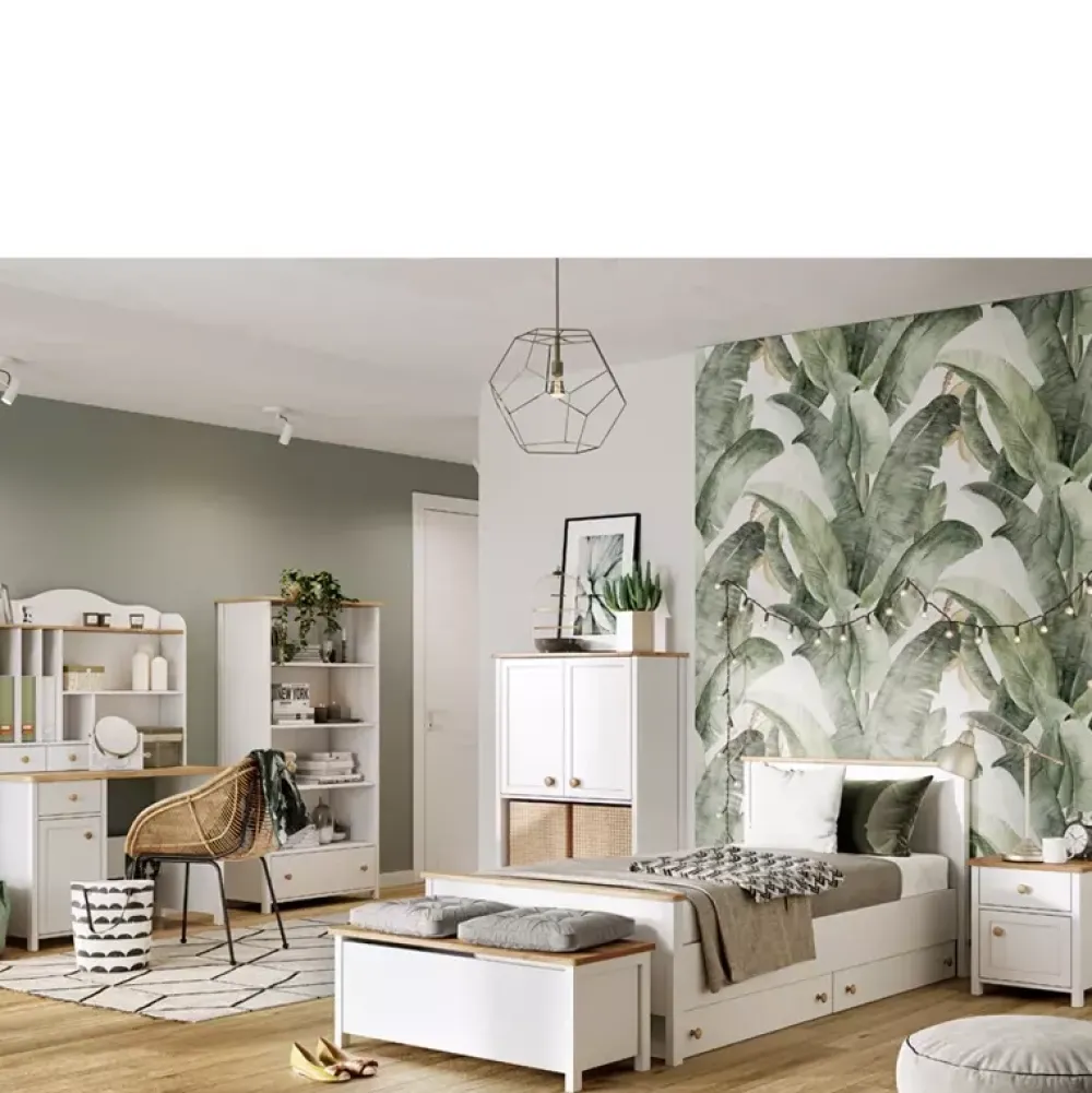 Nadstawka na biurko posiada również dwie szuflady na prowadnicach rolkowych, co ułatwia przechowywanie mniejszych przedmiotów zachowując porządek. Kolor bieli alpejskiej nadaje nadstawce elegancki i nowoczesny wygląd, który idealnie wpisuje się w trendy współczesnego wystroju pokoi młodzieżowych.
