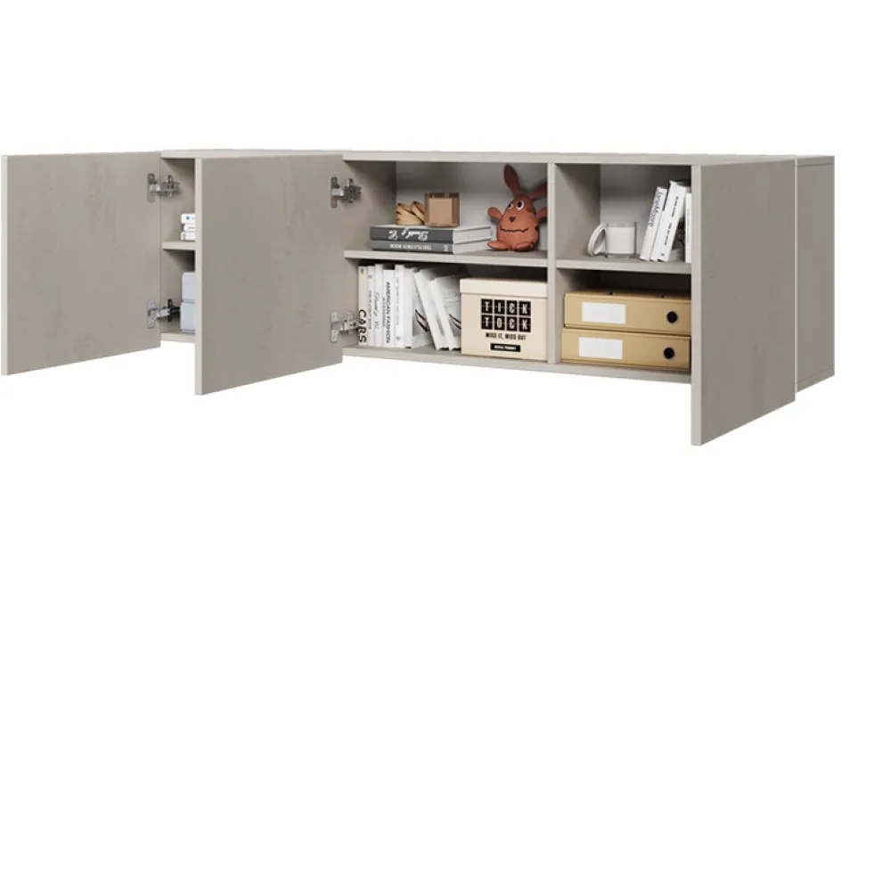 Szafka wisząca z trzema drzwiami to świetne rozwiązanie do przechowywania, które pozwala zaoszczędzić miejsce na podłodze, jednocześnie dodając wnętrzu lekkości. Proste, gładkie fronty w subtelnym odcieniu szarości podkreślają nowoczesny charakter zestawu. Wnętrze szafki jest podzielone na trzy przegrody, co ułatwia organizację przestrzeni.