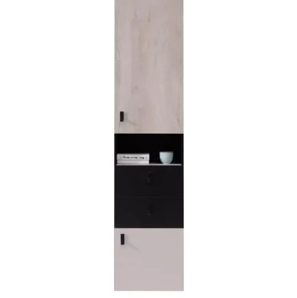 - Kolekcja mebli PRESSCOT jest dostępna w dwóch wariantach kolorystycznych: Czarny + Dąb + Beż oraz Morski + Dąb + Biały Lux.