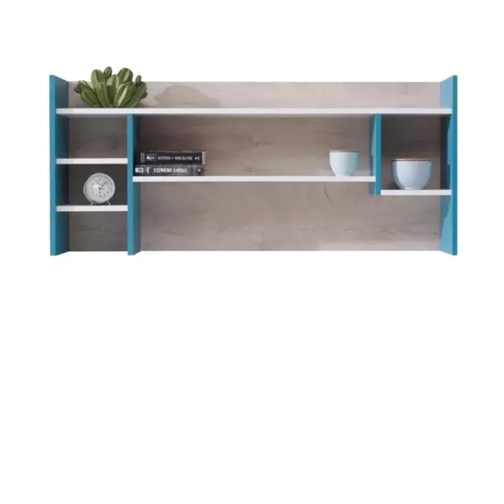 Nadstawka biurka z kolekcji nowoczesnych mebli systemowych PRESSCOT która została wyposażona w pięć półek daje ci wiele możliwości na ich zaaranżowanie. Kwiaty? Pamiątki? o tym wiesz tylko ty, dzięki czemu masz pełną swobodę w ich aranżacji. Półka dzięki morskiemu kolorowi sprawia wrażenie bardzo lekkiej.