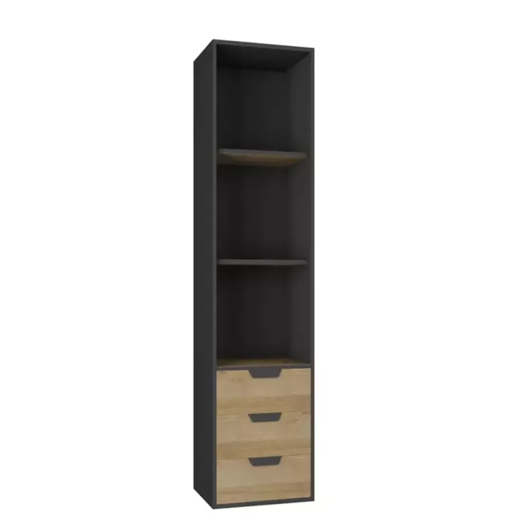 Wybór mebli do pokoju młodzieżowego często stanowi niemały problem. Zestaw mebli z kolekcji NELSE wychodzi na wprost oczekiwaniom i stanowi praktyczne oraz estetyczne rozwiązanie. W skład zestawu wchodzą dwa regały na książki, które posiadają dodatkowe miejsce na akcesoria czy ubrania. Szafa narożna jest bardzo pojemnym rozwiązaniem, posiada liczne półki wewnątrz, dwie szuflady oraz drążek na wieszaki. Łóżko posiada kontenerek oraz pojemnik na tekstylia. Komoda posiada cztery pojemne szuflady oraz pojemny kontenerek, w którym możesz umieścić ubrania. Uzupełnieniem zestawu jest półka wisząca, na której możesz z powodzeniem umieścić swoje książki oraz dekory.