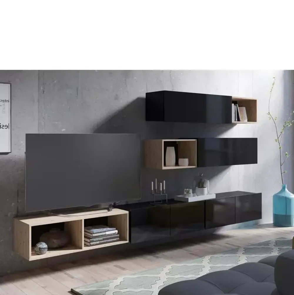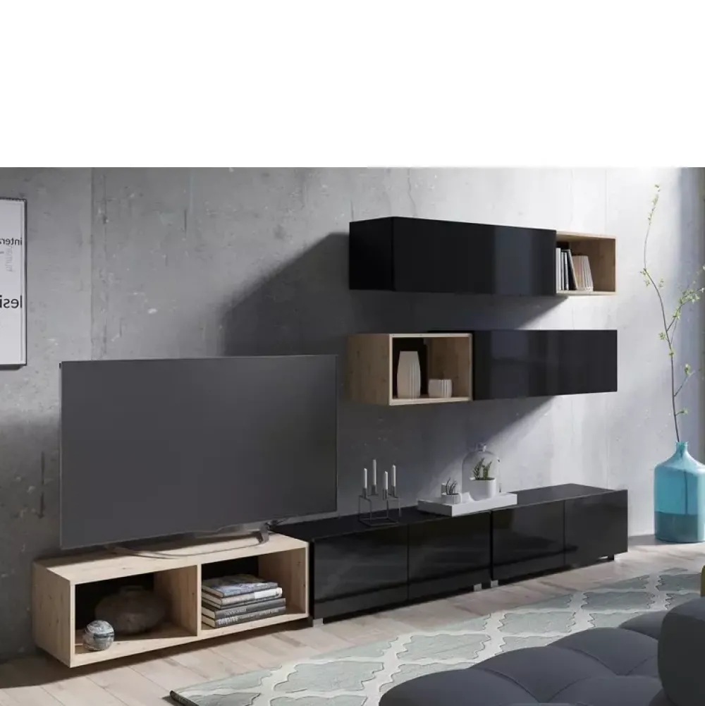 Zestaw mebli MODERN to starannie zaprojektowana kompozycja, która łączy wyrazisty czarny połysk z naturalnym akcentem w kolorze dąb artisan. Siedem funkcjonalnych elementów zapewnia dużą swobodę aranżacyjną i pozwala stworzyć przestrzeń, która zachwyca stylem i oferuje komfort codziennego użytkowania.