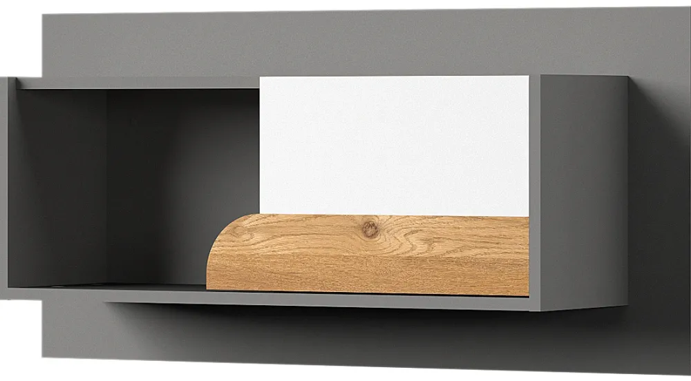 - Półka wisząca do pokoju młodzieżowego COOLIFY o szerokości 100 cm. Wykonana z płyty laminowanej 16 mm, krawędzie zabezpieczone obrzeżem PCV. Występuje w wybarwieniu: dąb nash, biały brylantowy oraz grafit.