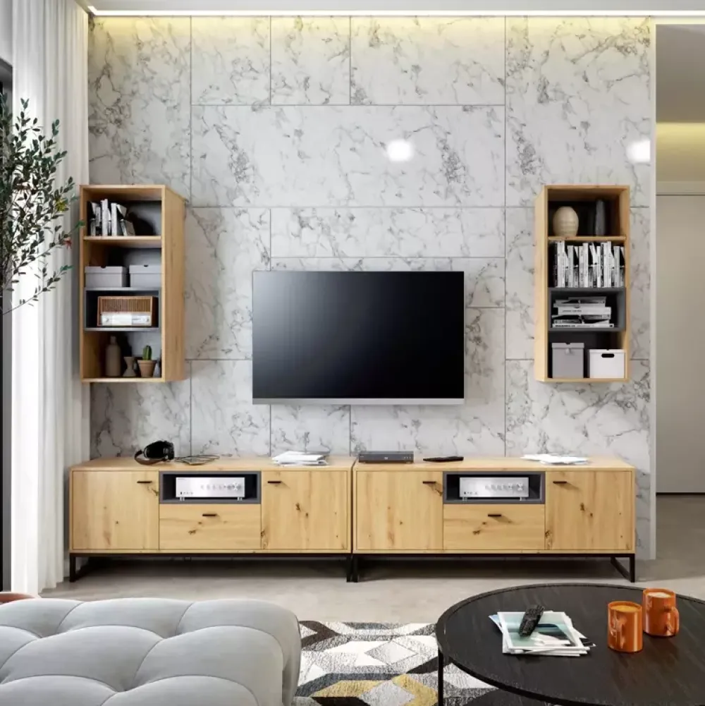 Każde pomieszczenie w, którym pojawią się bryły z kolekcji OLI stanie się reprezentatywną częścią domu. Meble systemowe wykonywane w nowoczesnym stylu loftowym zaskoczą każdego z odwiedzających Cię gości. Kolekcja wykonywana z zachowaniem zasad stylu industrialnego wprowadzi do wnętrza oryginalny charakter. Proste kształty brył osadzone na metalowych nogach idealnie wpasują się w gusta miłośników mebli skandynawskich, loftowych, a także industrialnych.