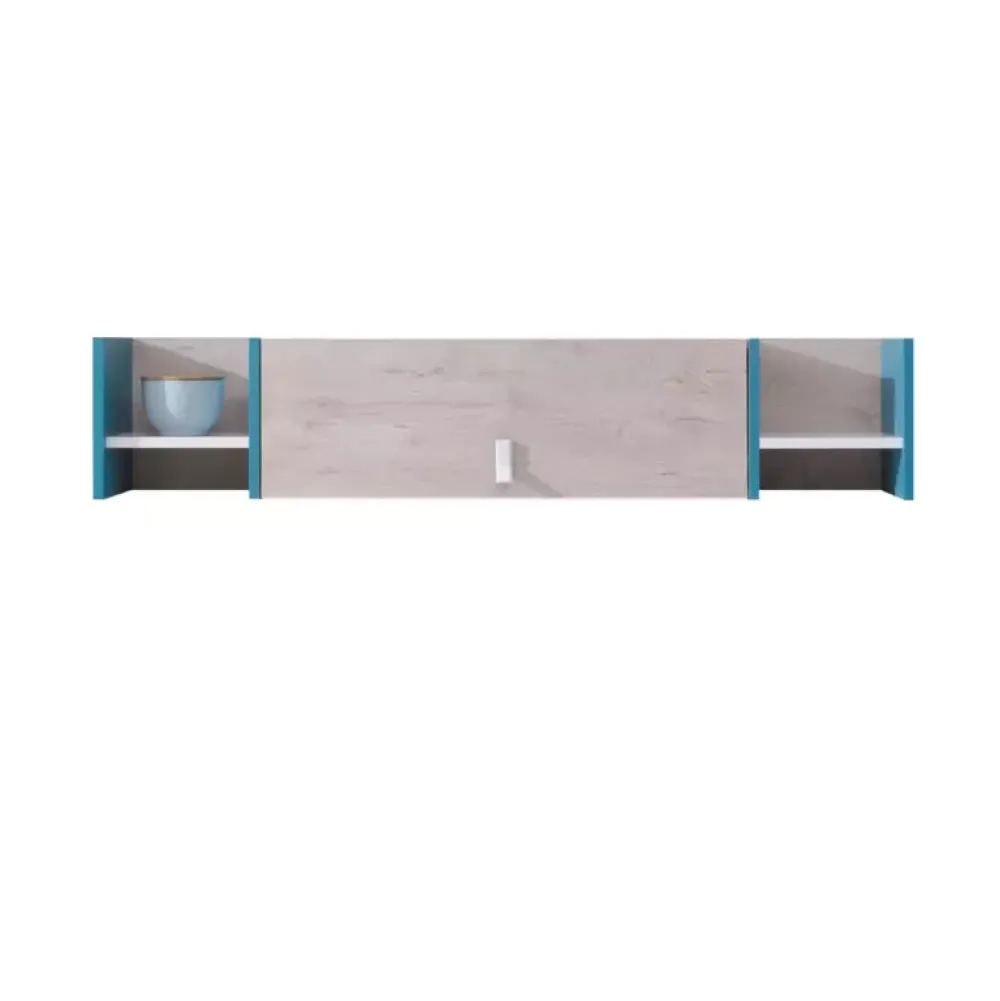 Szafka wisząca z kolekcji nowoczesnych mebli systemowych PRESSCOT z niebanalną stylistyką oraz praktycznymi zastosowaniami, dzięki czemu stanowi idealne rozwiązanie do pokoju młodzieżowego, szafka dodatkowo została wyposażona w półki po bokach, gdzie możesz umiejscowić swoje drobne dekory czy akcesoria, ożywiając w ten sposób pomieszczenie,.