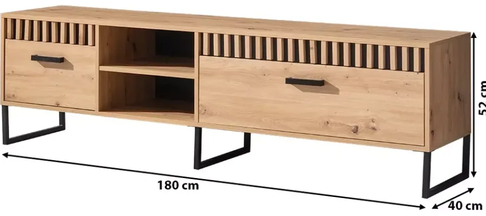 - Nadaj swojemu salonowi loftowy klimat z naszą szafką RTV LAMELIX o szerokości 180 cm. Dąb artisan i czarne detale łączą siłę natury z industrialnym stylem.