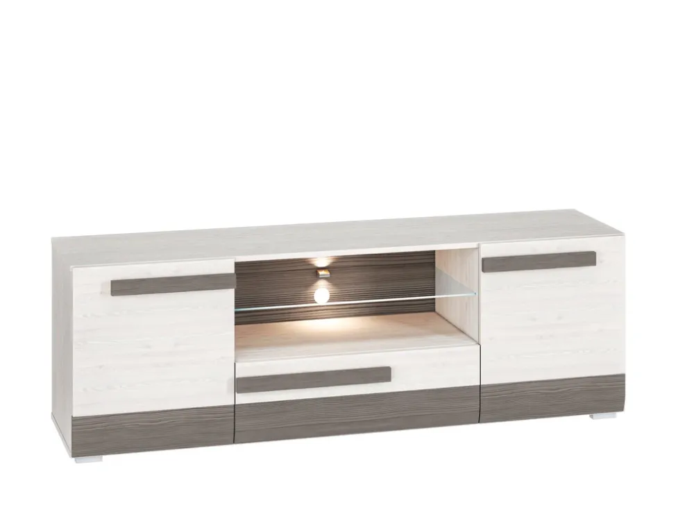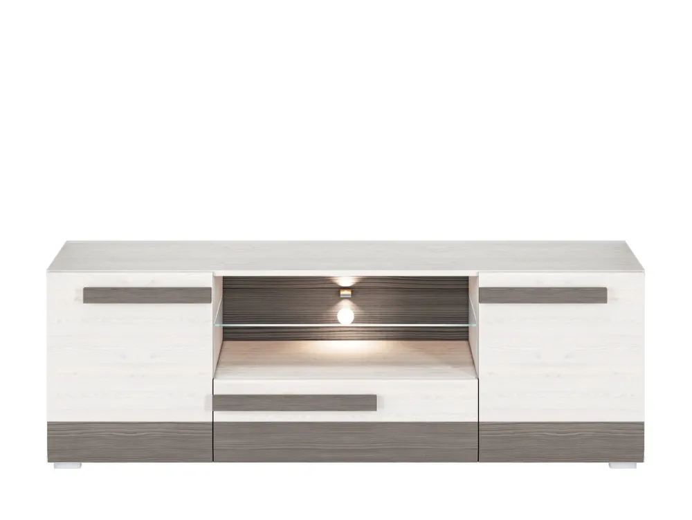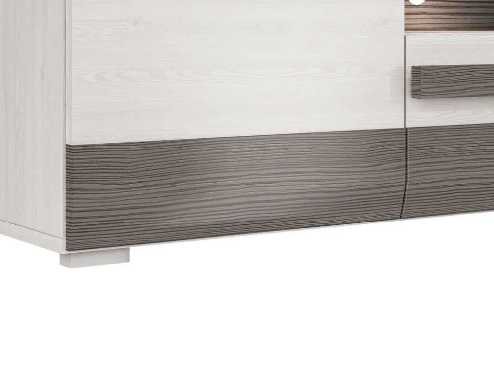 Poznaj szafkę RTV o szerokości 165 cm BLANCO, która doskonale łączy elegancję z funkcjonalnością. Jej jasny, inspirowany naturą kolor sosny śnieżnej wnosi do Twojego wnętrza świeżość i lekkość, tworząc idealne tło dla nowoczesnej elektroniki i dekoracji.