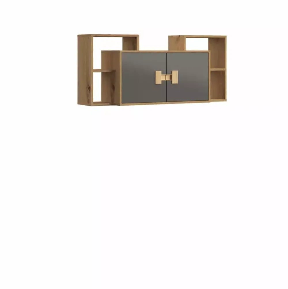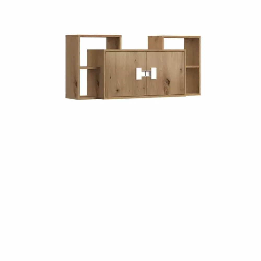 - Nowoczesna szafka wisząca w kolorze Dąb Artisan z kolekcji INDEX. Szafka została wyposażona w drzwi z nowoczesnymi uchwytami w formie wnęk, za którymi znajdziemy obszerną przestrzeń do zagospodarowania. Szafka zawiera również stylowe nadstawki.