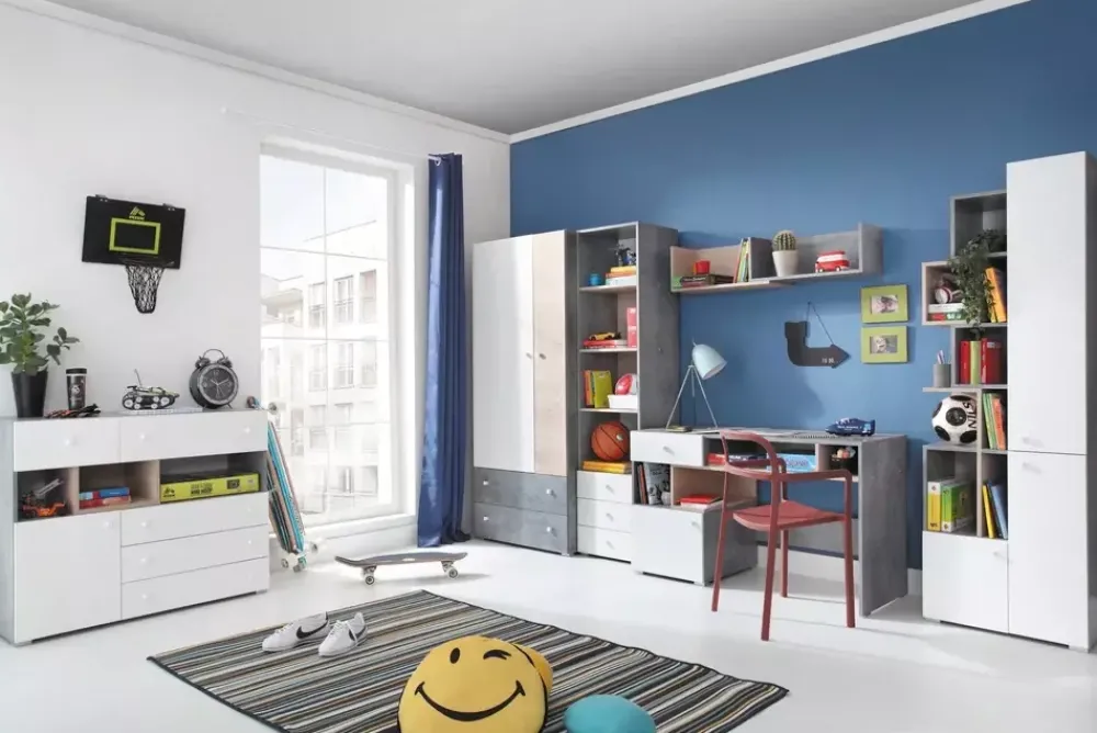 - Kolekcja mebli SIREN dostępna jest w dwóch wariantach kolorystycznych Biały Lux + Beton oraz Biały Lux + Beton + Dąb.