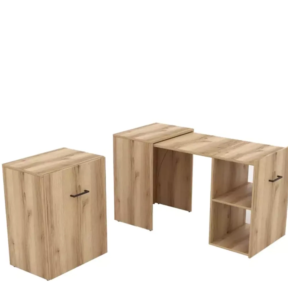 - Biurko SEMARENO zostało wyposażone w funkcję składania, która w prosty oraz szybki sposób zamienić małą szafkę w pełnowymiarowe biurko, które poprzez zastosowanie dwóch poziomów pozwoli dodatkowo na umieszczenie części własnych akcesoriów.