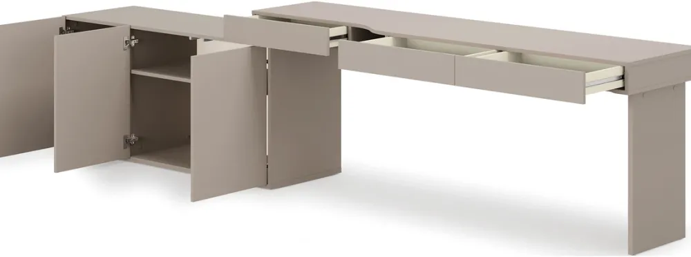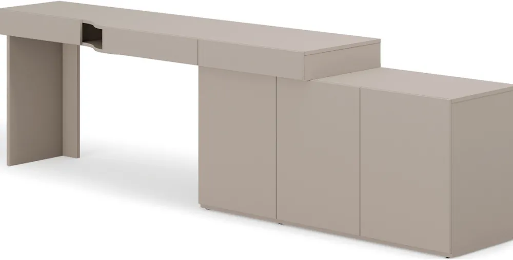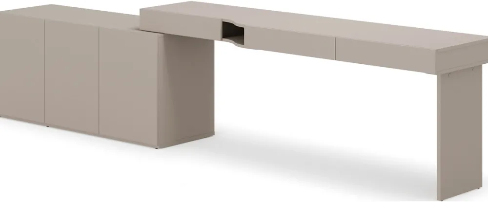 - Zestaw WOOW biurko prawe z komodą w kolorze szampański/clay gray to idealne rozwiązanie do pokoju młodzieżowego. Szeroki blat, szuflady i półki zapewniają komfort nauki i porządek, łącząc nowoczesny styl z funkcjonalnością na co dzień.