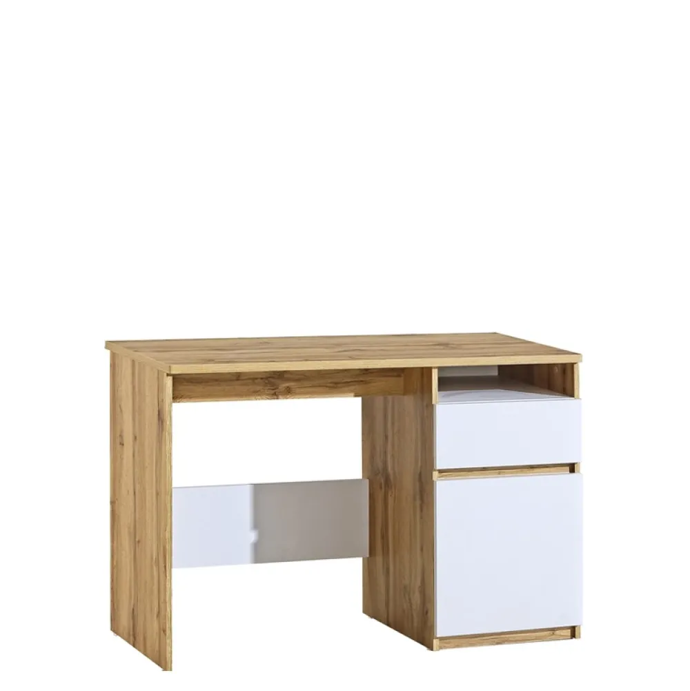 Ten mebel łączy w sobie styl i funkcjonalność, a jego uniwersalny design sprawia, że doskonale wpasuje się w każdą młodzieżową aranżację wnętrz. Oferuje komfort i organizację, które są niezbędne dla efektywnej pracy umysłowej. Wspomaga rozwój, służy kreatywności i inspiruje do dążenia do celu. To biurko jest nie tylko meblem – to miejsce, gdzie młodzi ludzie mogą rozwijać swoje pasje, zdobywać wiedzę i osiągać sukcesy.