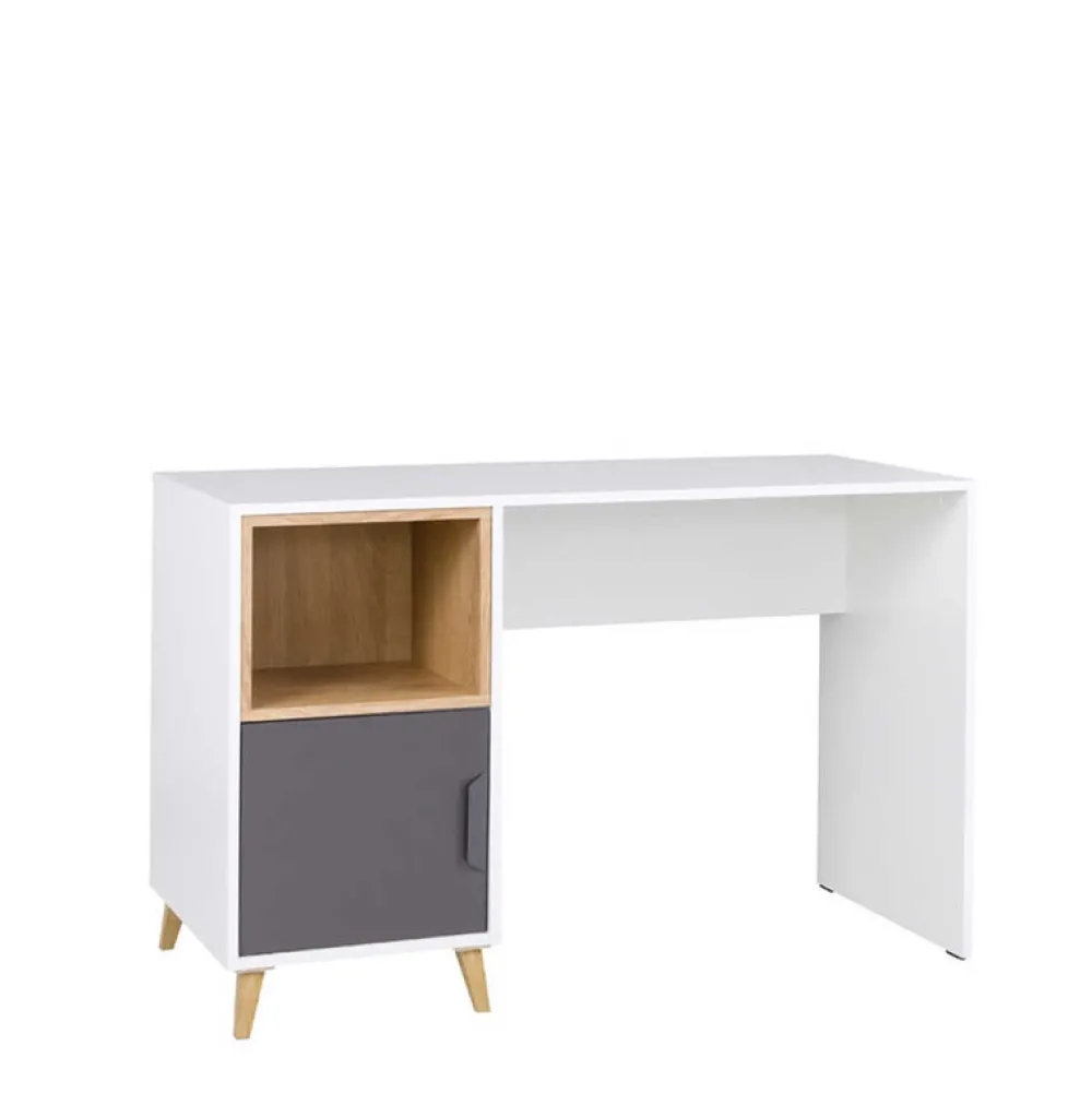 - Biurko na skandynawskich nóżkach ma blat o rozmiarze 120×55.