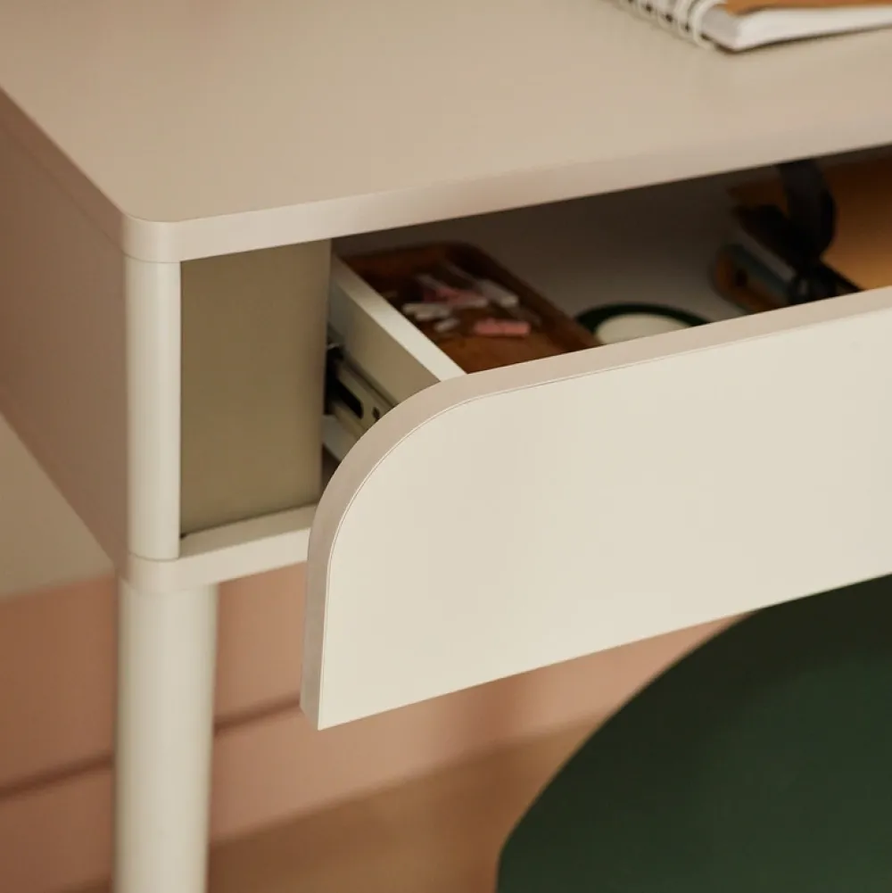 Dwie praktyczne szuflady zapewniają wystarczająco dużo miejsca na przechowywanie wszystkich niezbędnych akcesoriów. Niezależnie od tego, czy chodzi o notatniki, długopisy, czy tajne skarby – wszystko ma swoje miejsce.